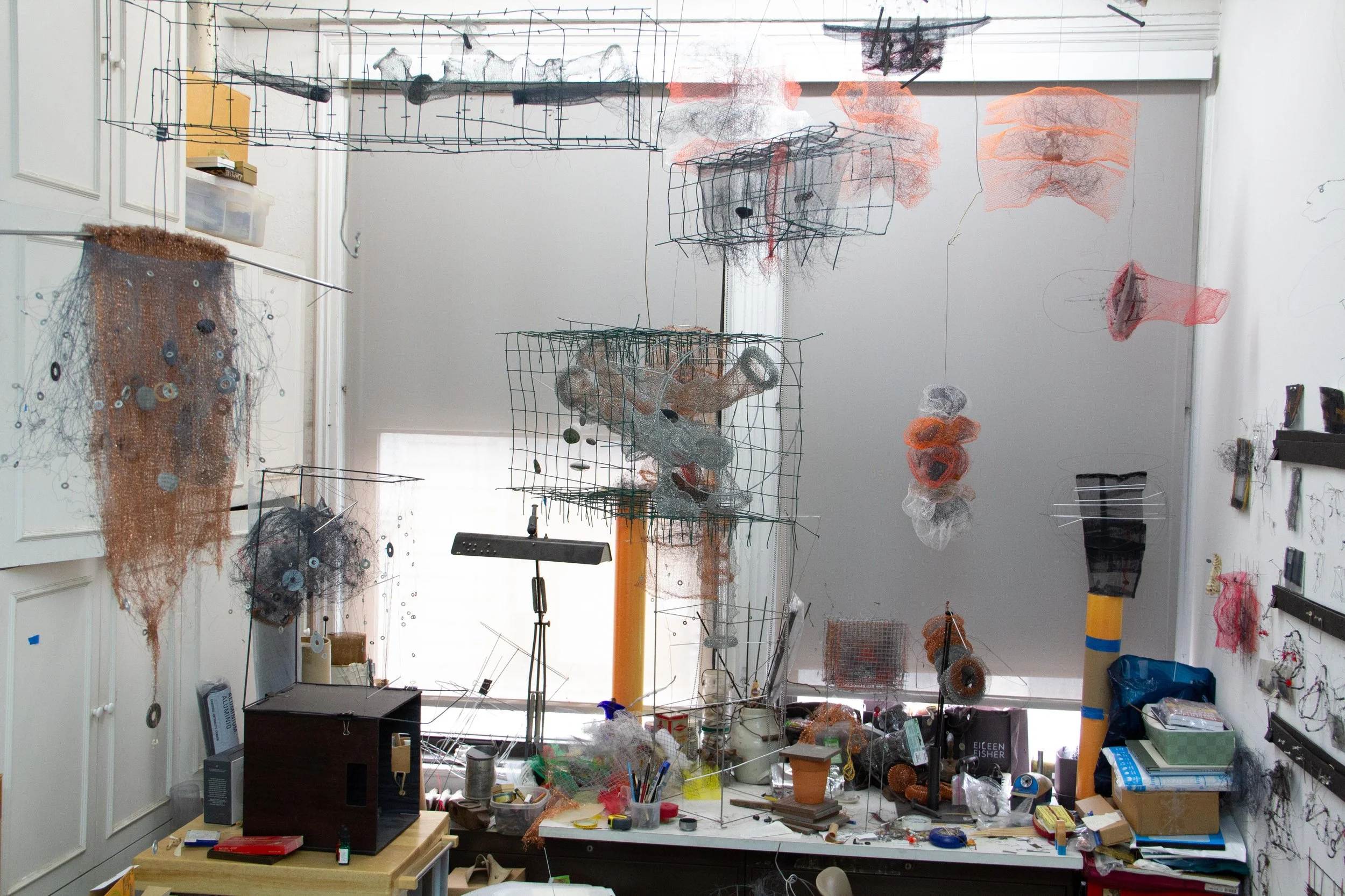 The making of art has been a lifetime involvement, and a daily activity for me. I grew up in New York City but moved many times in my childhood, living across the United States and Central America. I learned to draw early, starting with the Ebony Black and magical mechanical colored pencils that were always on my father’s desk. As a young girl I was taught to use a needle and thread and from then on, textiles became a vehicle for deep investigation. In my teens, I learned traditional weaving techniques in Mexico, expanding my awareness of the complexity of structures within the weaving vocabulary. I did not know then where this would lead but it was always in my mind.